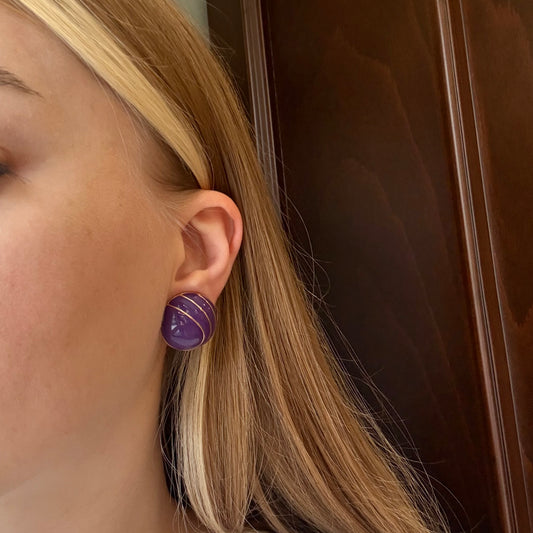 Vintage Mor Mineli Button Küpe
