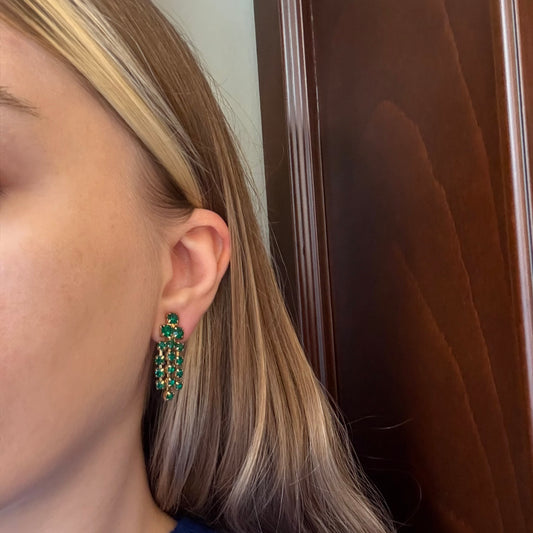 Vintage Zümrüt Yeşili Çekoslovak Küpe