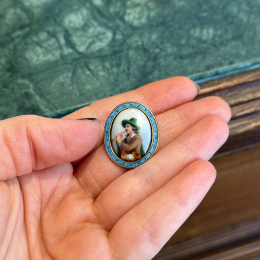 Vintage Porselen El Boyaması Gümüş Kolye Ucu / Charm