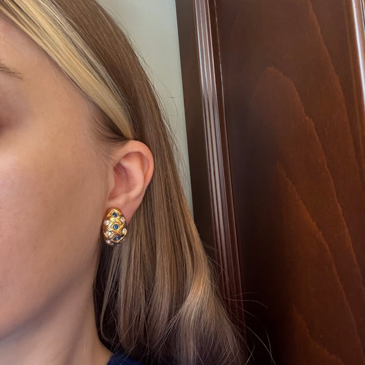 Vintage Lacivert Taşlı Örgü Küpe