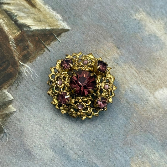 Vintage Çekoslovak Kristalli Broş