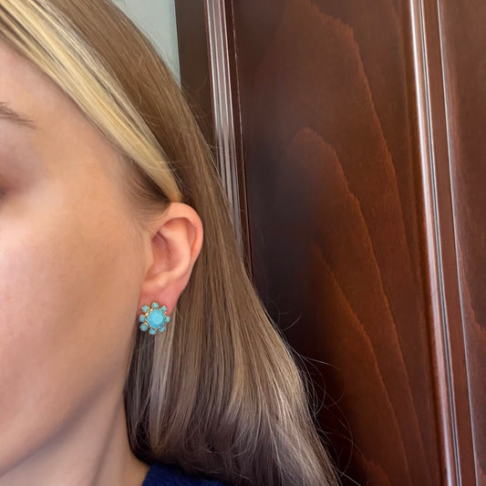Vintage Turkuaz Opalin Çiçek Küpe