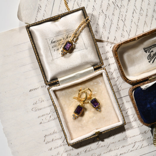 Ametist Taşlı Küpe (Sarı Altın) - Baguette Koleksiyonu