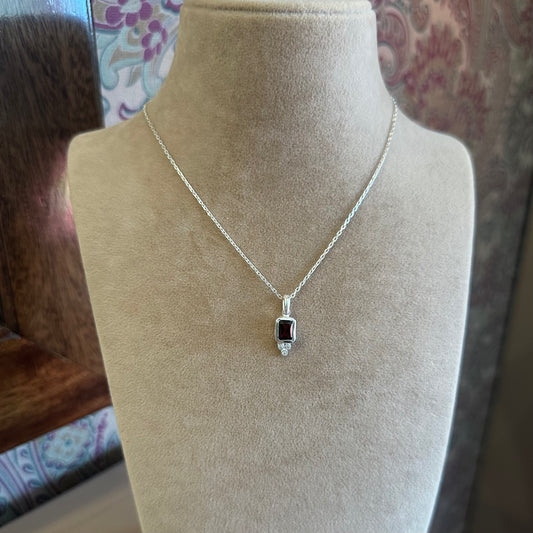 Garnet Taşlı Kolye (Beyaz Altın) - Baguette Koleksiyonu