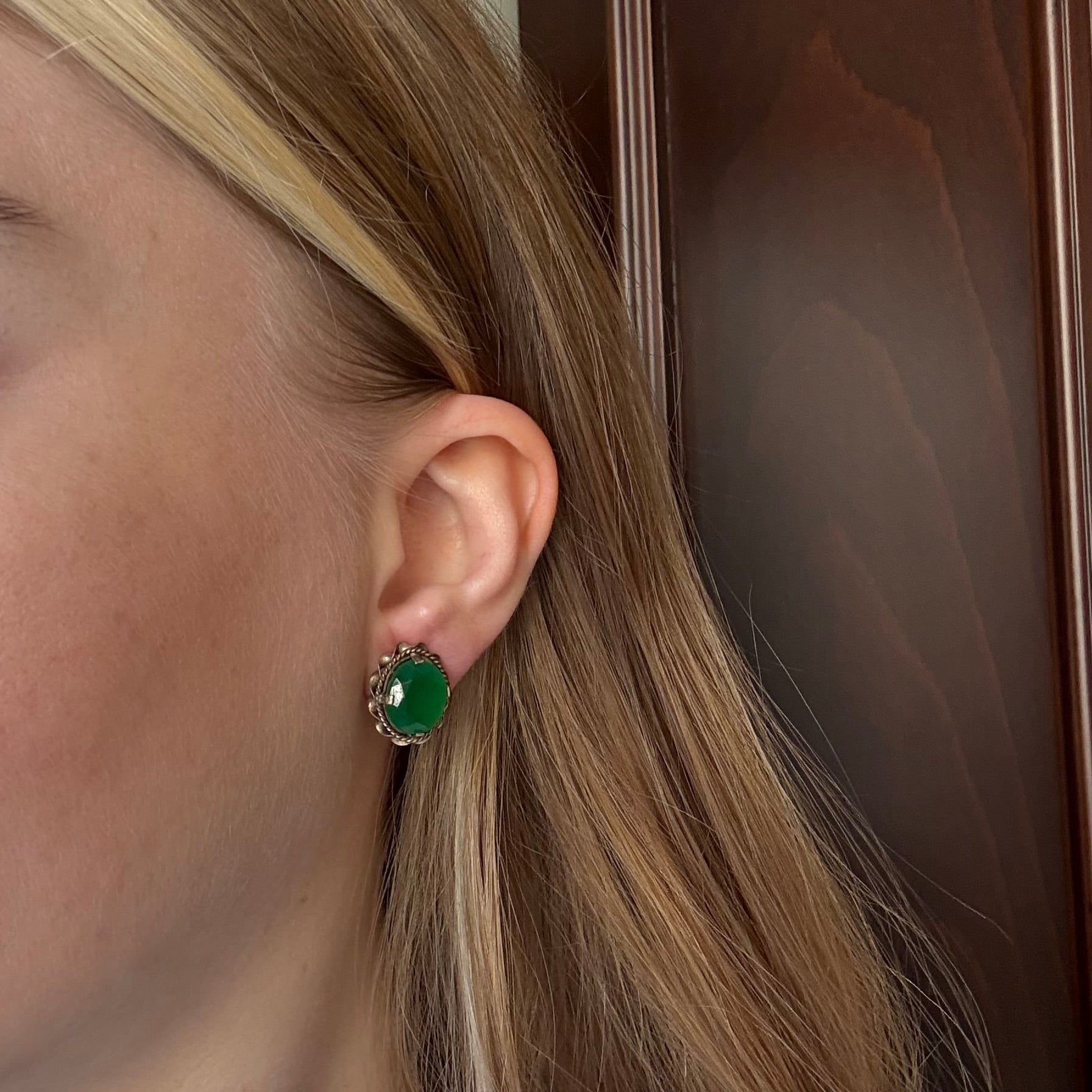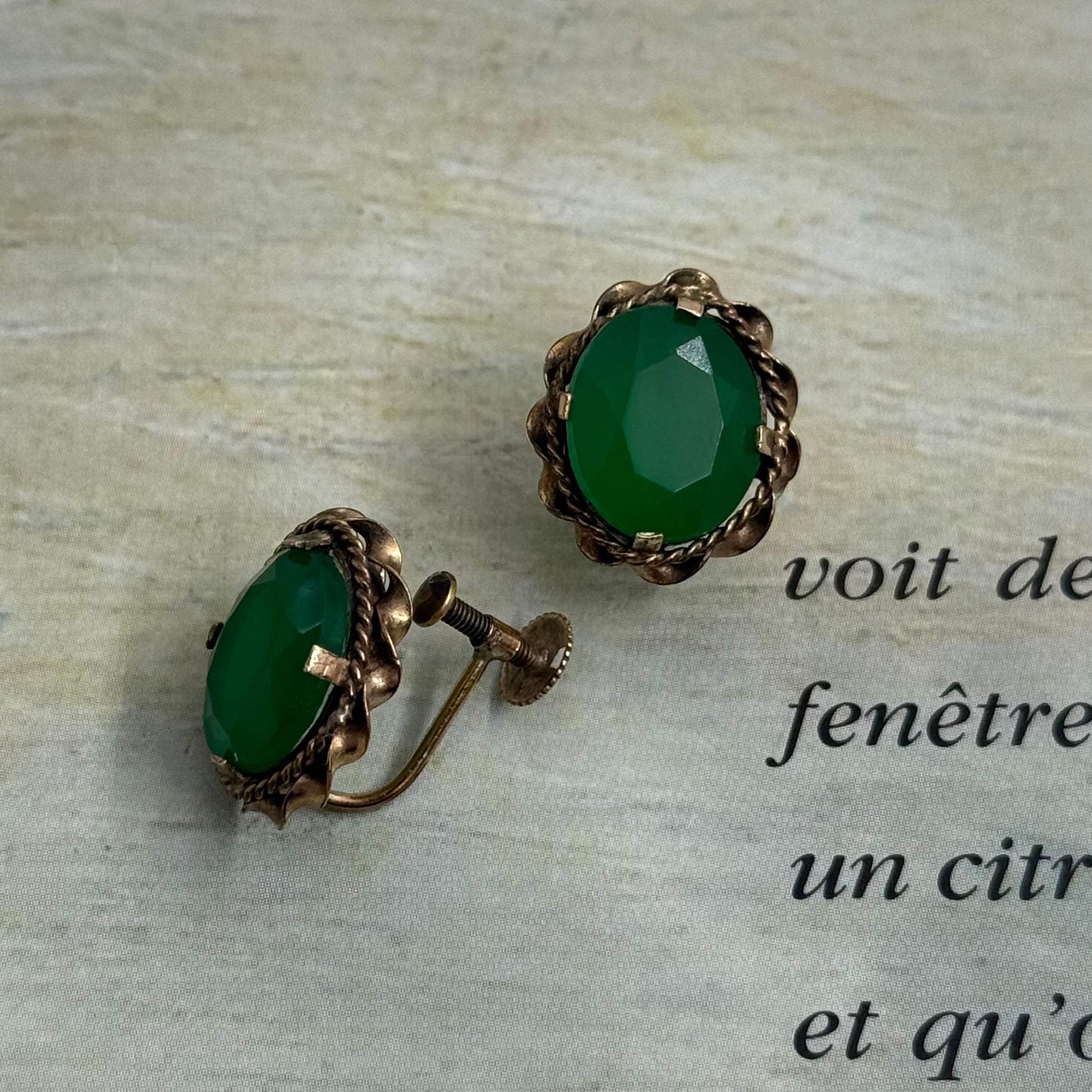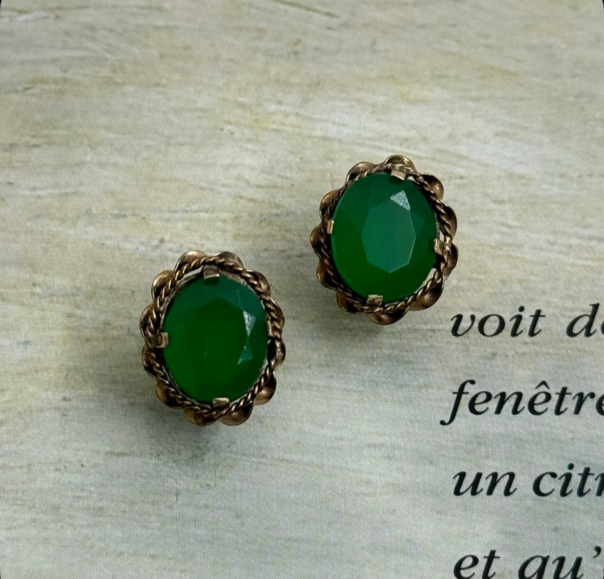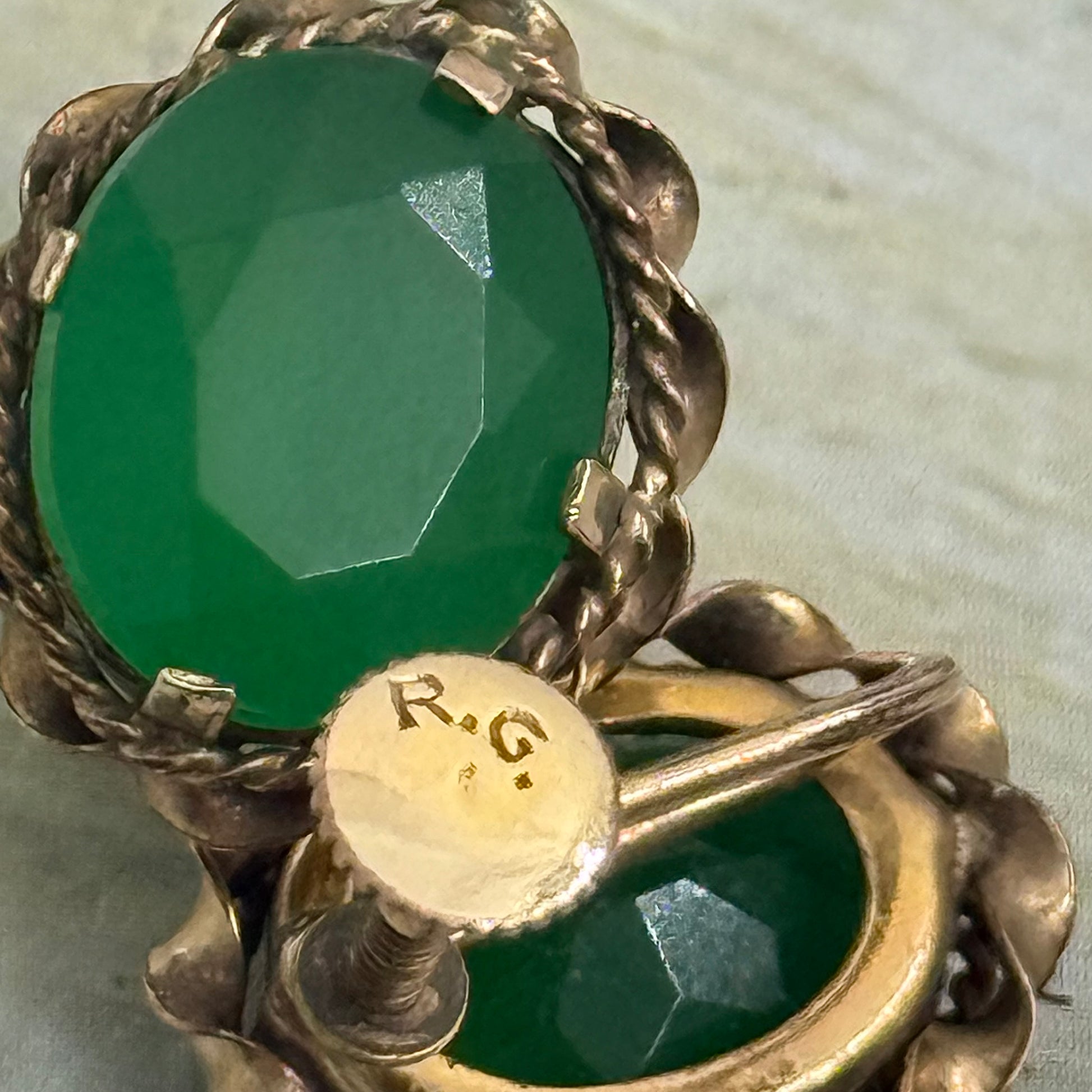 1900’ler başından, Çekoslovak işi, antika küpeler. R.G (rolled gold) damgalıdır. Bu damga, altın oranı yüksek bir kaplama kullanıldığını gösterir, dayanıklıdır. Vida klipslidir.