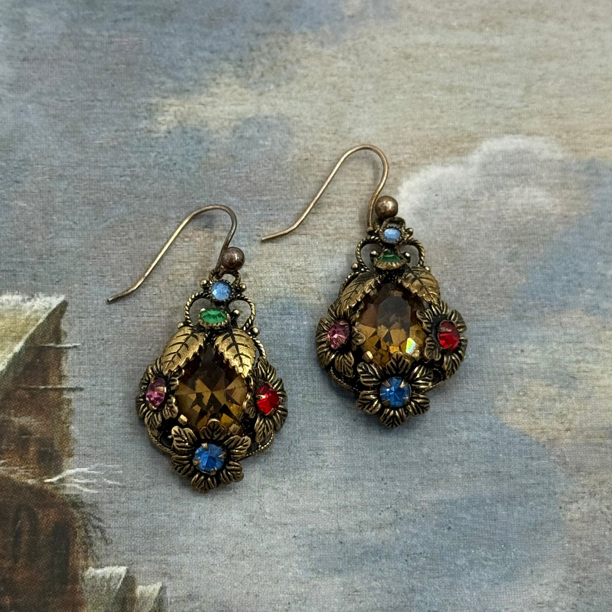 Çekoslovak yapımı, oldukça orijinal bir tasarıma sahip, antika ayarında küpeler.