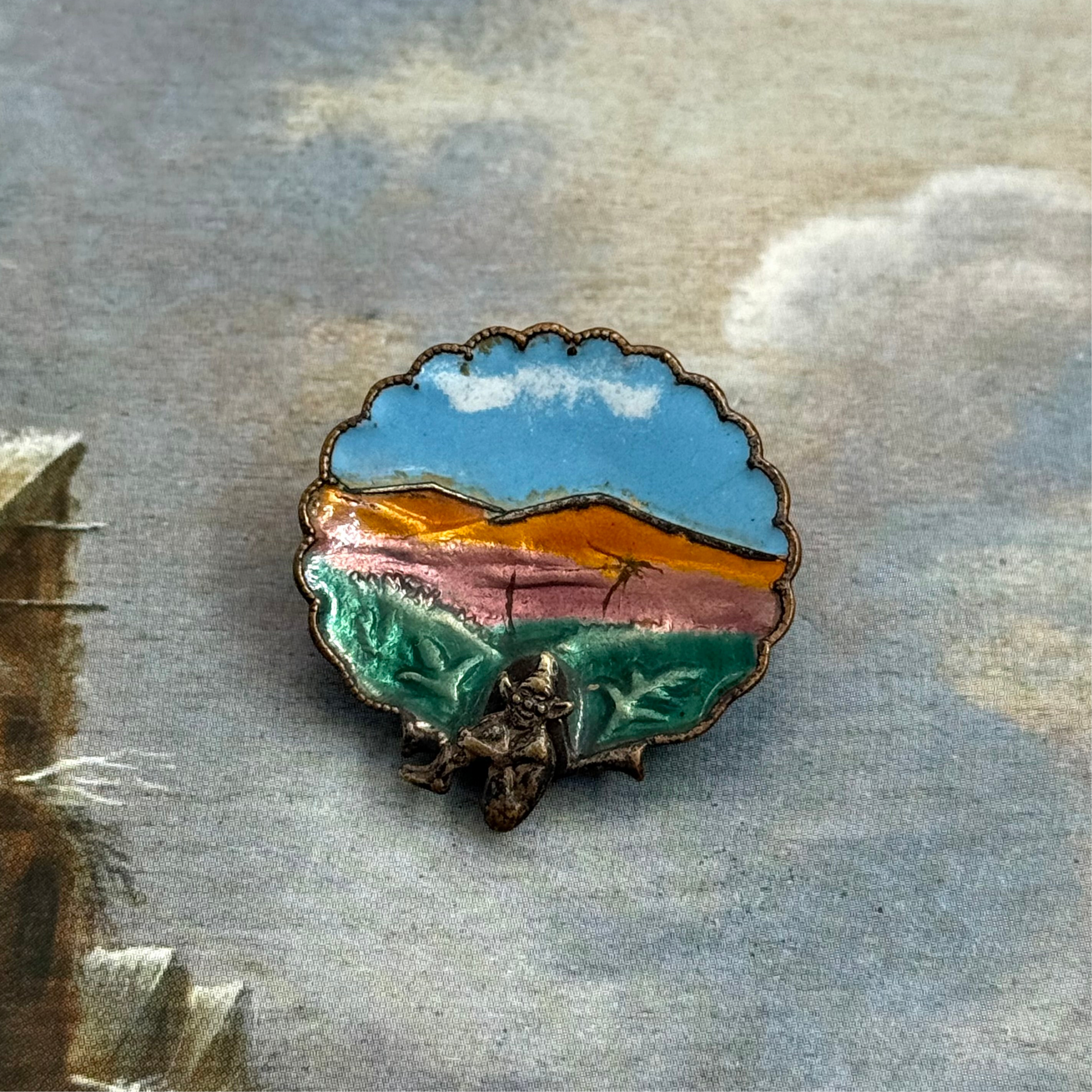 1930’lardan, el boyaması yapılmış, elf figürü detaylı vintage broş.