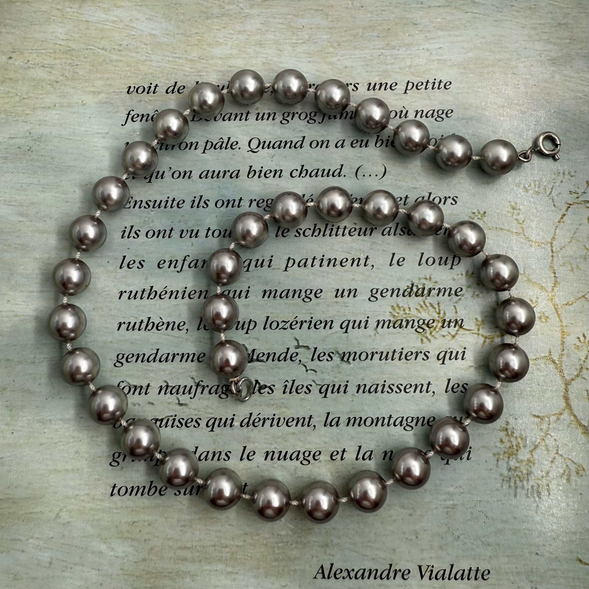 Metalik gümüş rengi boncuklardan oluşan vintage kolye.