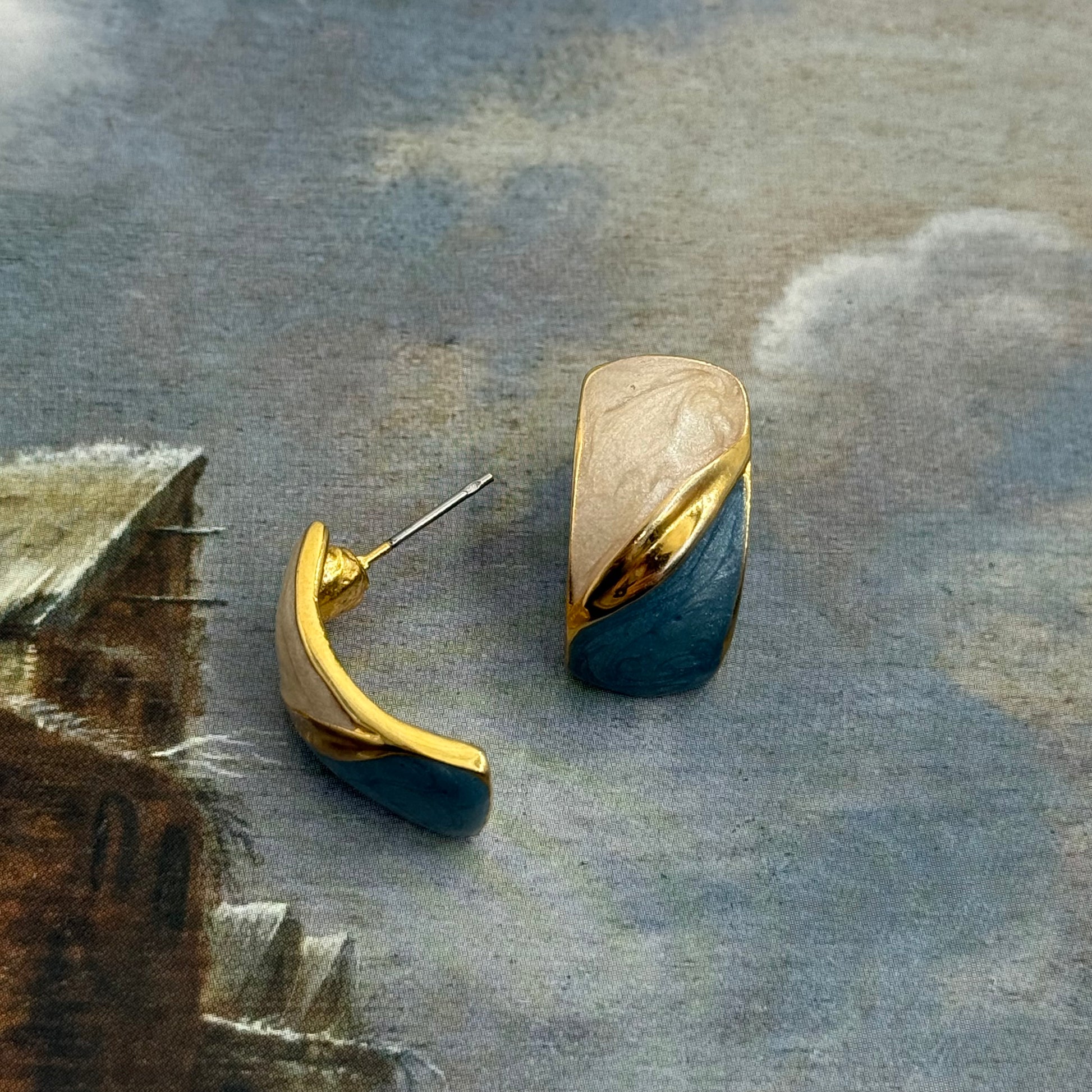 Çift ton mine işi yapılmış küpeler. Arkaları iğnelidir.