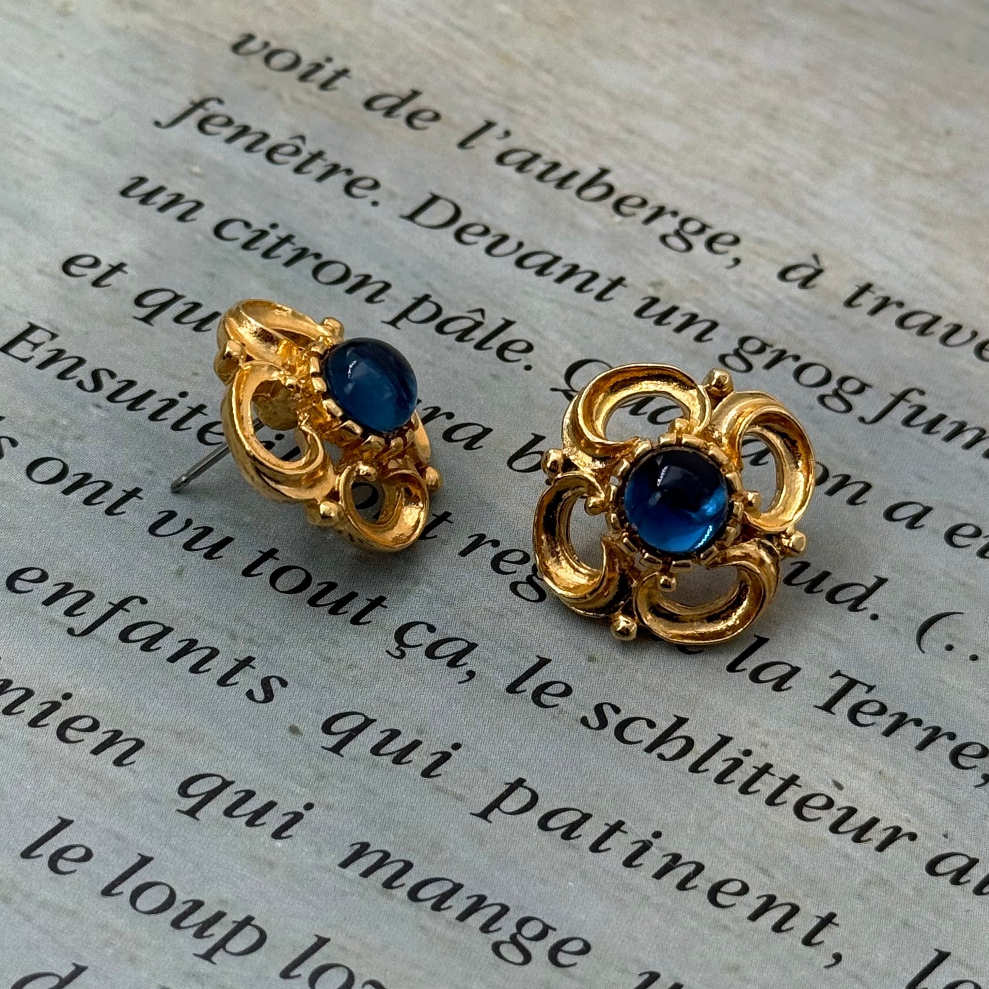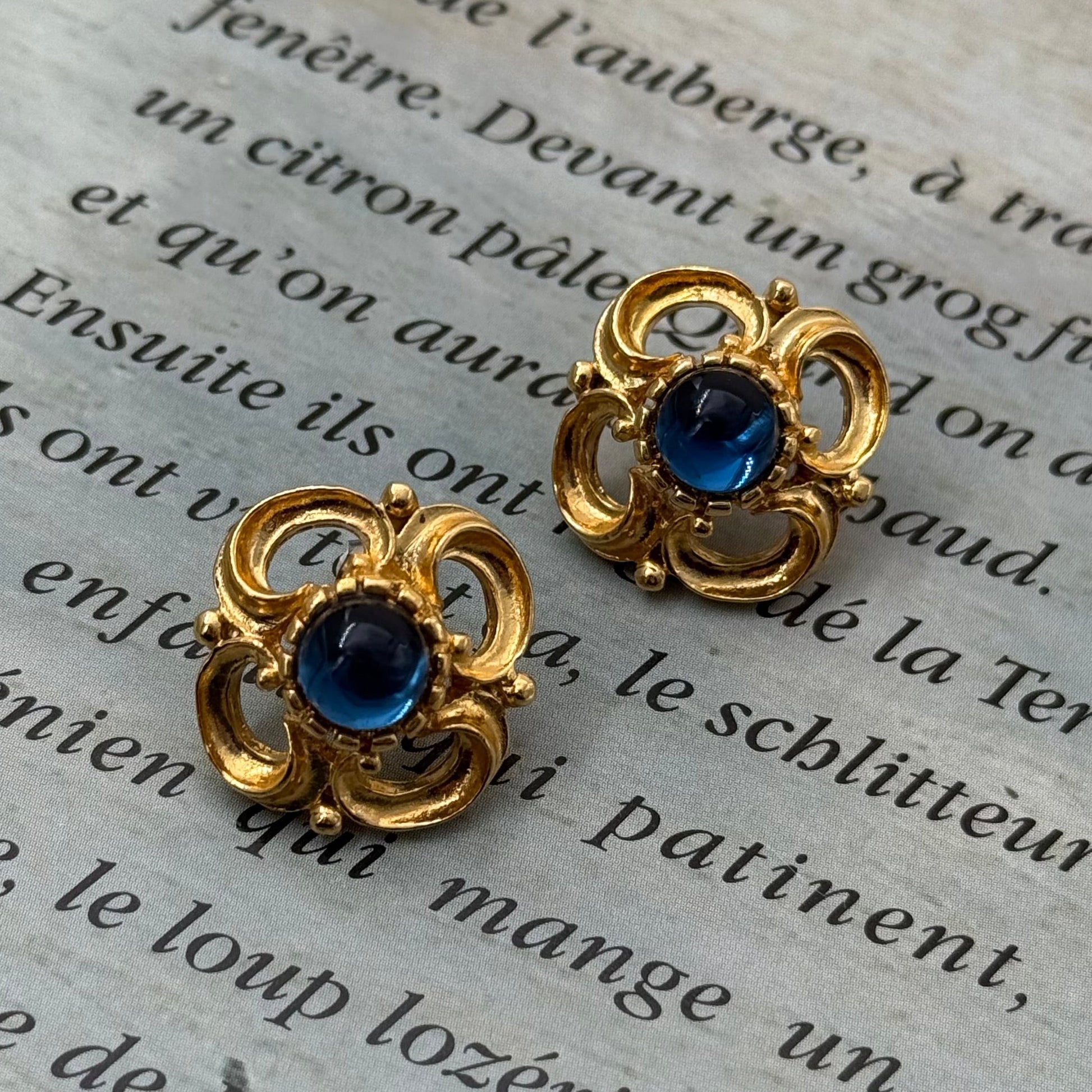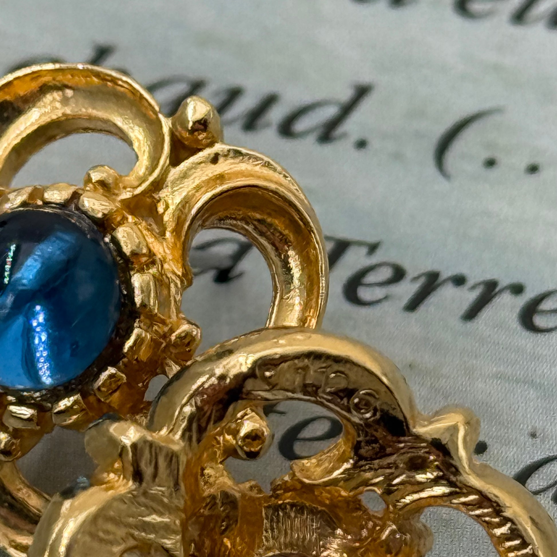 Sphinx İmzalı Mavi Taşlı Vintage Küpe