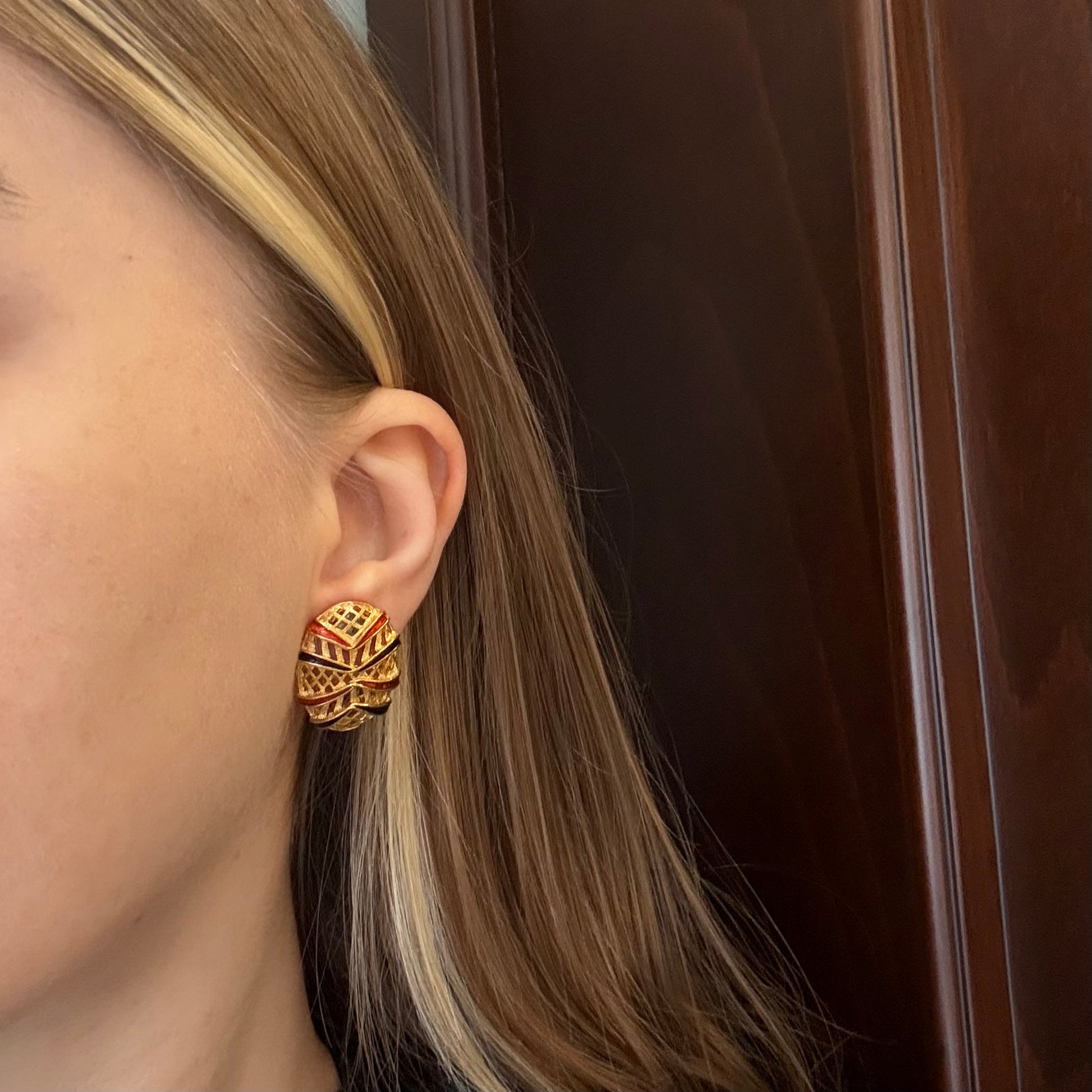 Sphinx markasının üretimi, mine detaylı, yüksek kalitede küpeler. Marka damgası mevcuttur. New old stock (kullanılmamış) bir üründür.