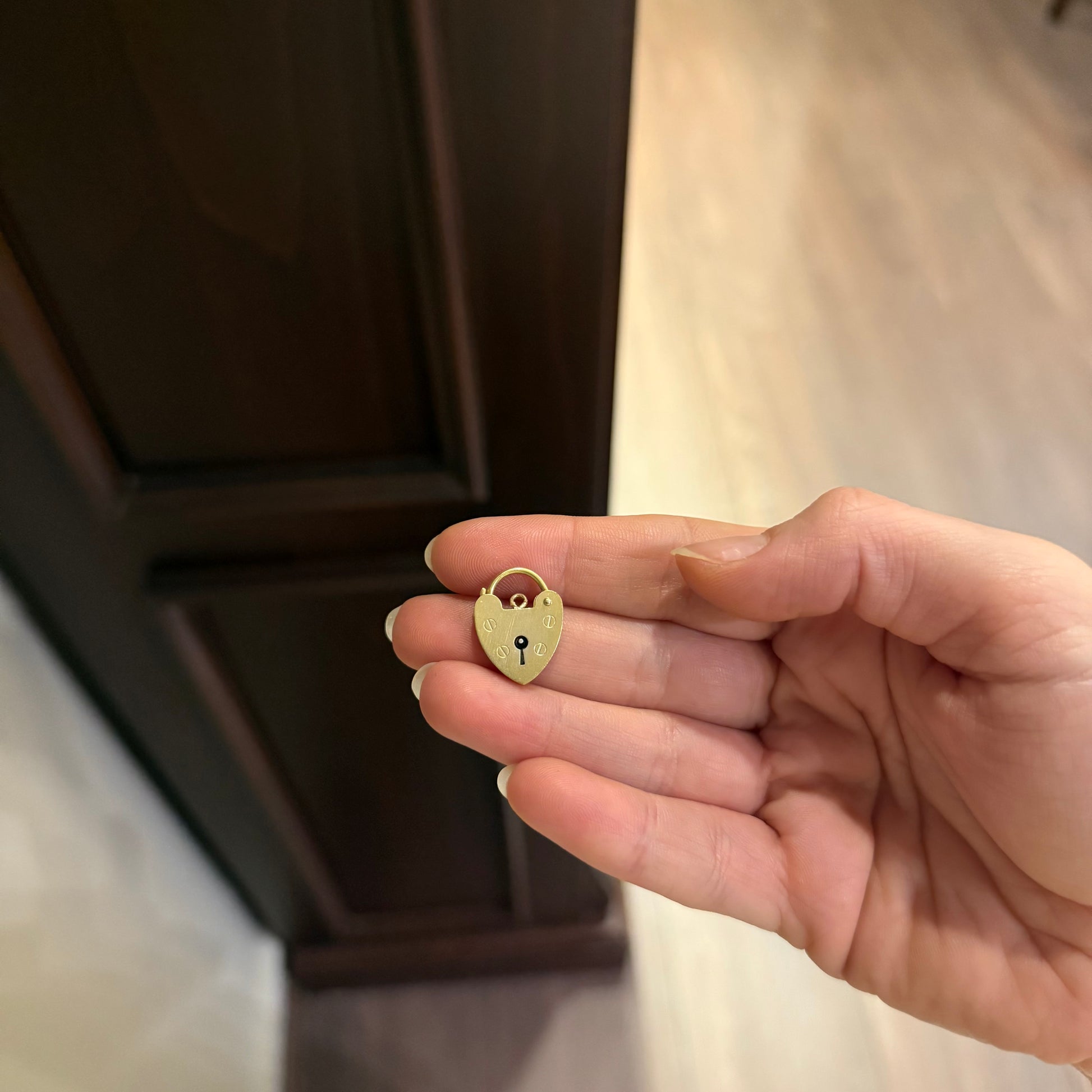 Arkasında damgaları olan, kilit figürlü padlock kolye ucu. Üst kısmı açılabilir, mekanizması düzgün çalışmaktadır.