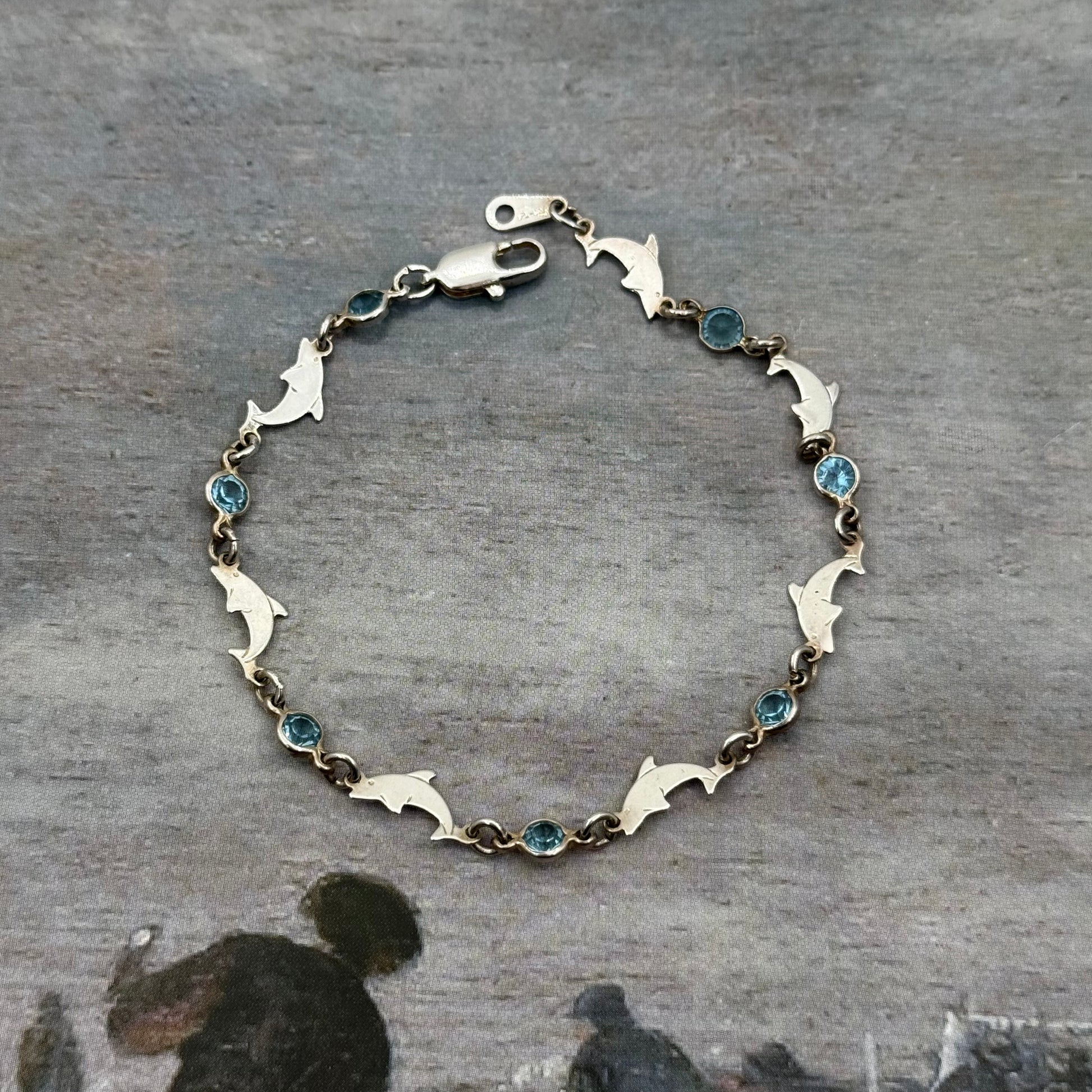 925 ayar gümüş, yunus figürlü ve kristal taş detaylı vintage bileklik.