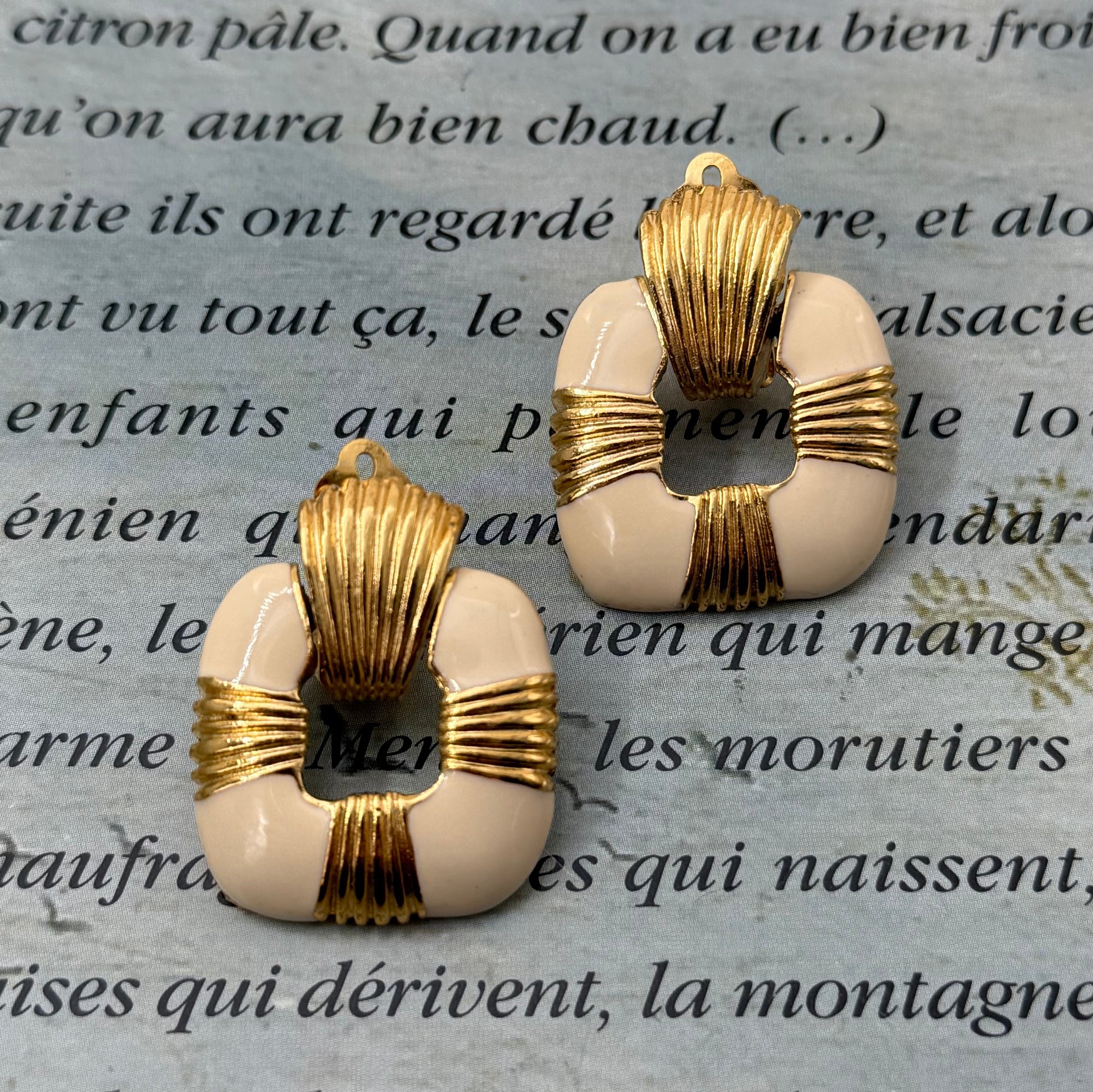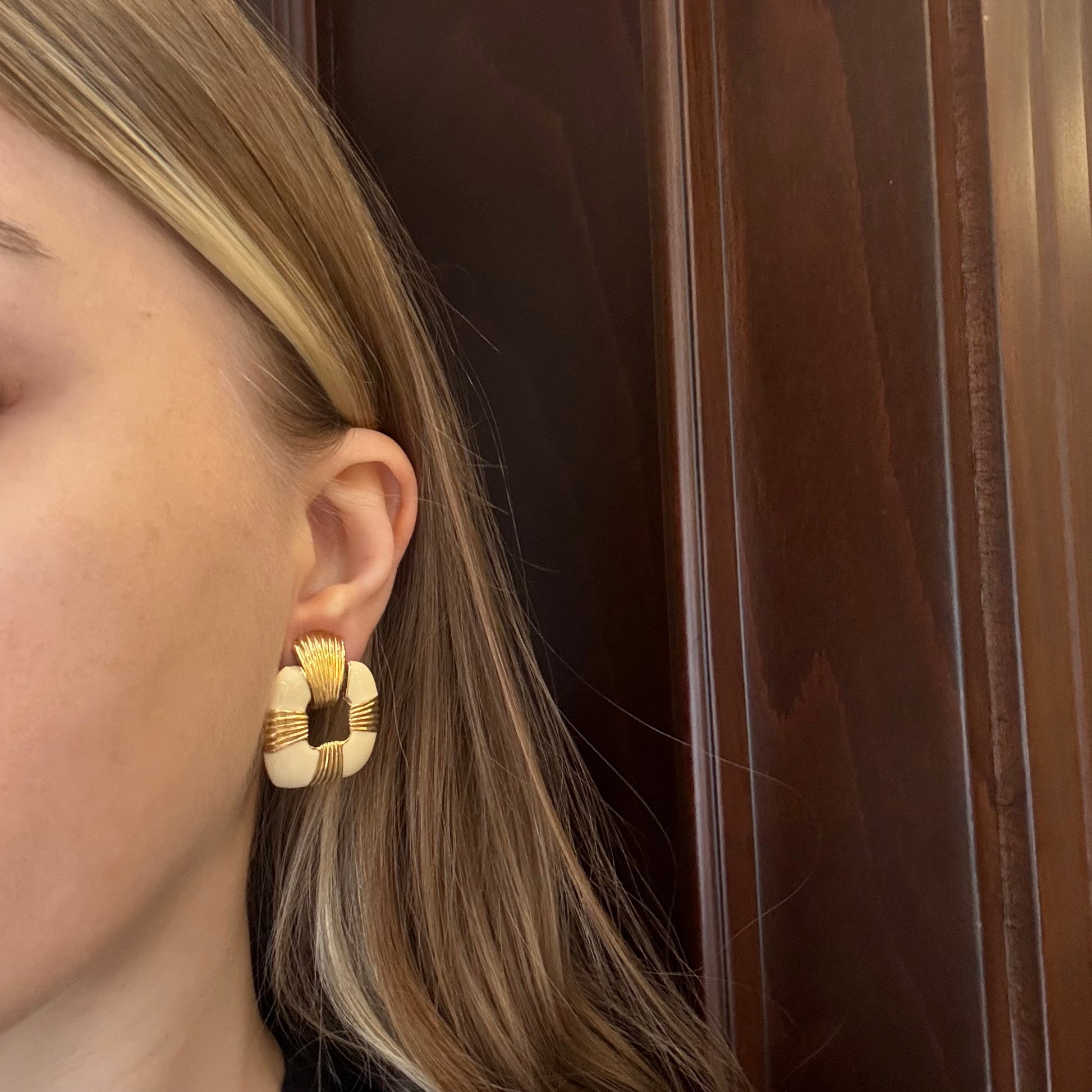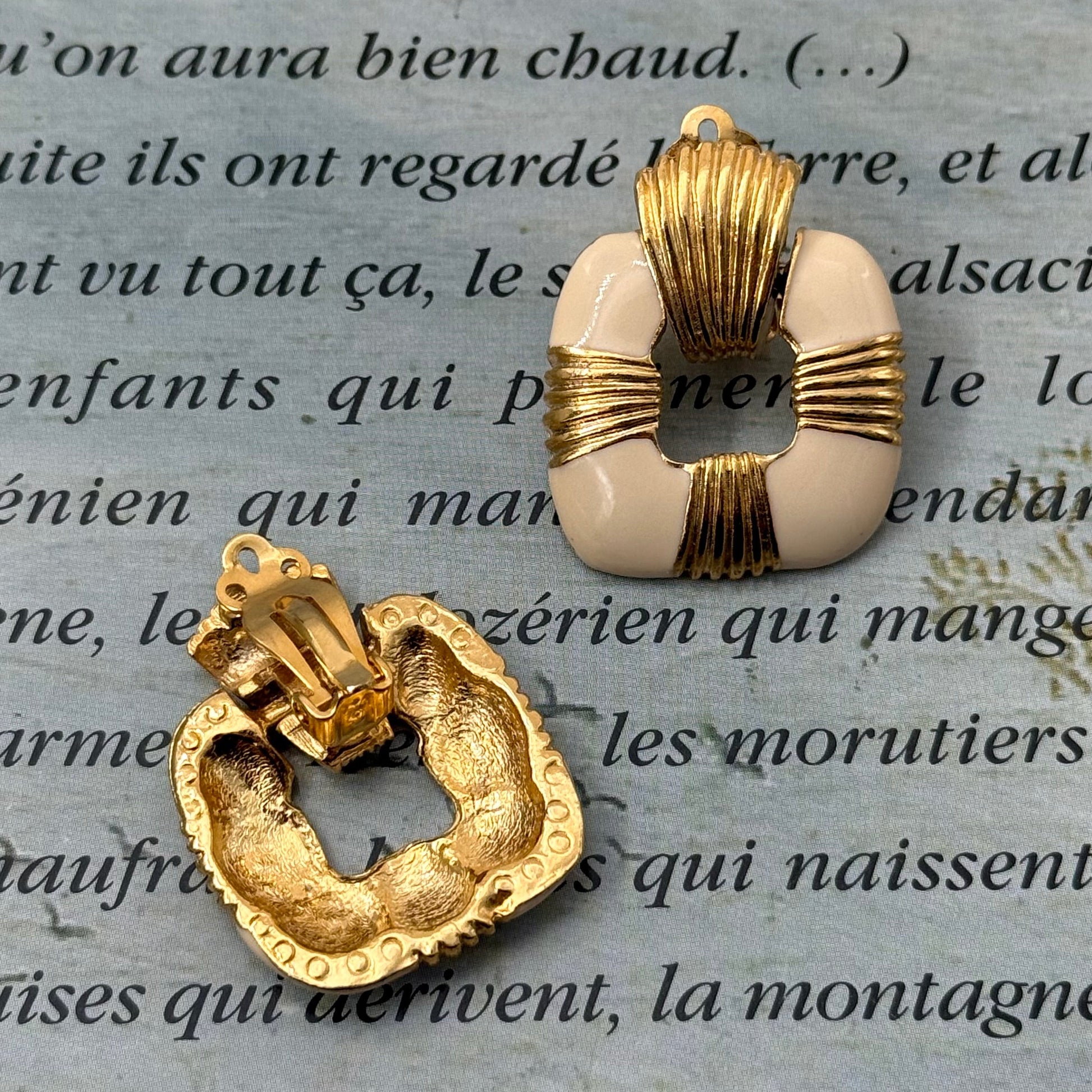 80'lerden, krem rengi mine detaylı vintage küpeler.
