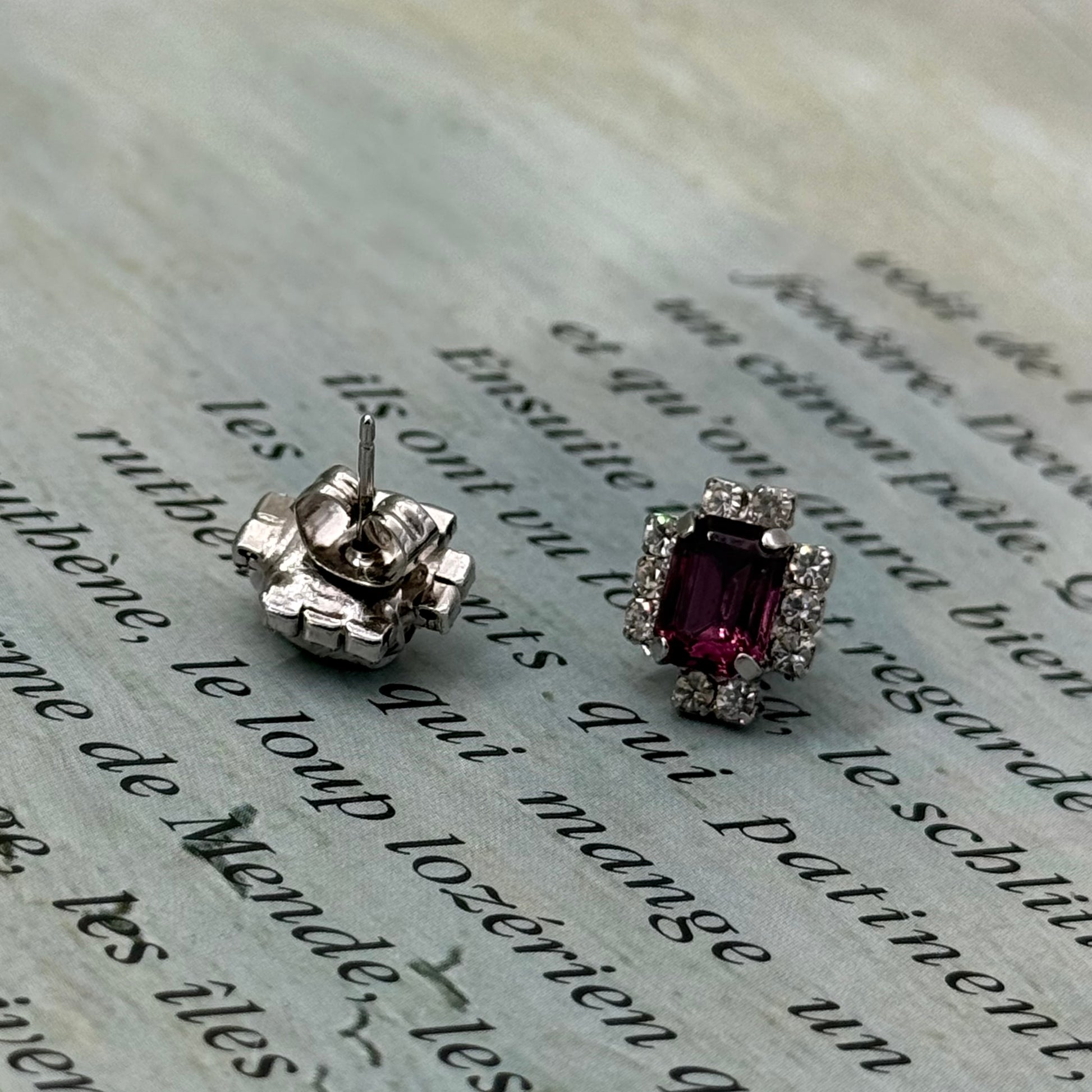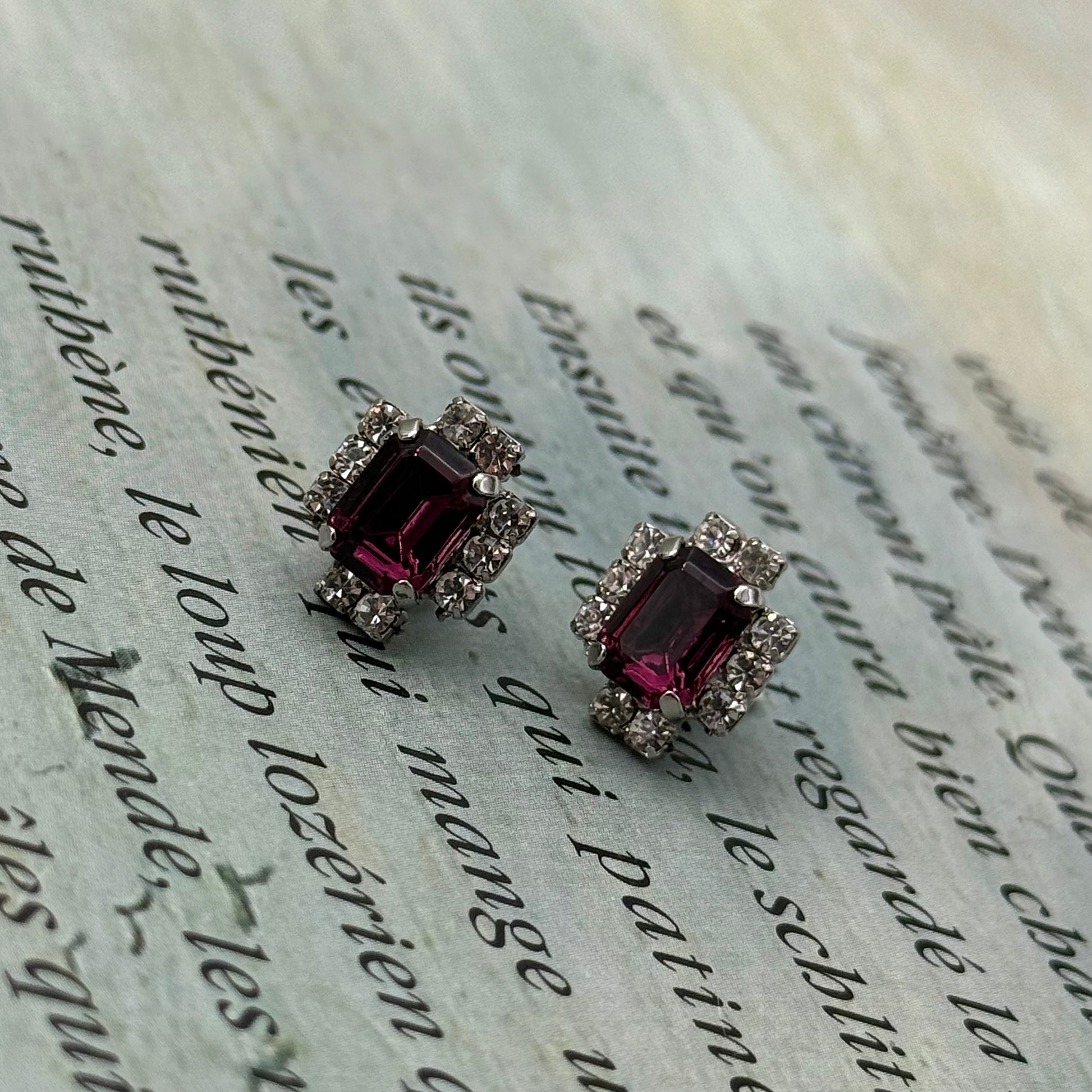 Vintage Mor Kristal Küpe